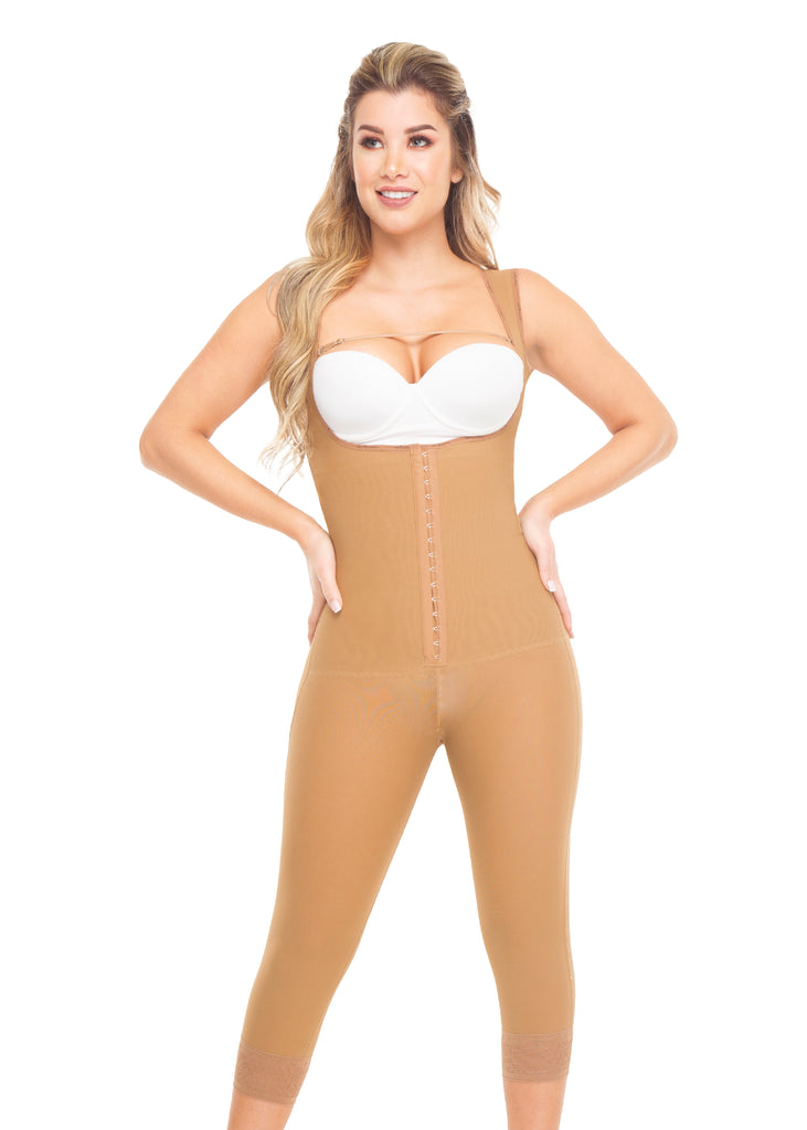 Full back support, calf length (Capri-pant type). Wear with pants, jeans and Capri pants.